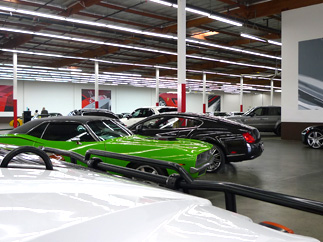 などなど、高級車ばかり。車は店舗内に並べられ、どの車も魅力的な仕上がりで夢のようなラインナップだ。敷地内に整備スペースと塗装スペースも設けているので、車のコンディションも非常によく検品も問題なしの合格。担当者も気さくで親切、継続的に取引したいディーラーさんだった。