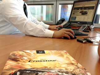 こちらはロスにあるHONDAディーラー。これまで何台かの新車をここから仕入れている。今回、お客様から依頼されている仕様やグレード、色などをディーラーに伝えて、在庫システムを検索してもらった。このお店にない場合は、他店から取り寄せてもらうことになる。これが州外からの取引になってしまうと陸送費用など余計な経費がかかるので、できるだけロス近郊のディーラーさんと仲良くトレードすることが重要だ。