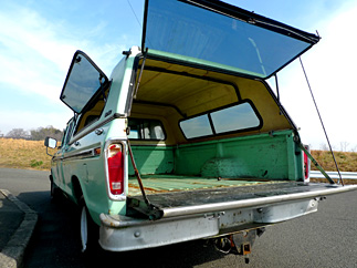 何と言っても色がいい。浜辺が似合うライトグリーンの1976年フォード F-150 RANGER。アメリカのオークションサイトで見つけた一台だ。純正っぽいレイト感たっぷりのキャンパーシェルもGOOD。スーパーキャブ仕様の2列シートなので、たっぷり6人座れる。